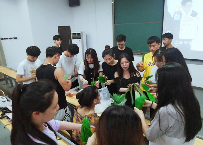 伴随着欢快的音乐,同学们发挥着自己的想象力,包出一个又一个可爱的粽子。播音2班刘倩同学说:“以前在家只见过奶奶包粽子,自己还没有亲手包过,这次班级举办的活动让我亲手体验了一次包粽子,实在太有趣了。”叶恒同学说:“原来看似小小的一个粽子包起来这么不容易,我们中国的传统美食让人赞叹,虽然在公司吃不到妈妈包的粽子,但是和同学们一起包粽子也有着满满的幸福感,导员和同学就像是我的家人一样。”