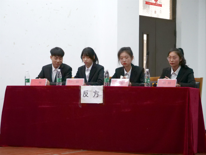 比赛开始,双方一辩开门见山,用极具概括性的陈述为本场辩论开篇陈辞,使比赛顺利进入正题。紧接着双方二辩补充陈辞,接着向对方辩友发问,辩手们灵活的思维和缜密的逻辑推理,使场下的观众看得十分过瘾,不时为其喝彩鼓掌,同时也将比赛渐渐推向白热化阶段。