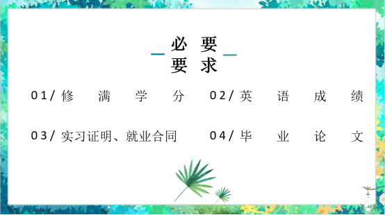 班委点名后,方雯怡老师以顺利毕业的必要要求为切入点,讲述了修满学分、英语成绩过关(四级)、实习证明、毕业论文四个点的重要性。同时,她为大家详细介绍了实习手册、三方协议、就业推荐表、毕业生登记表、团组织关系转移等内容。