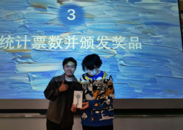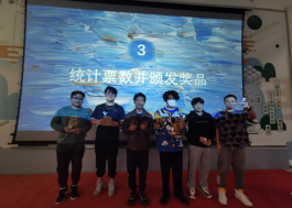 伴随着同学们的欢声笑语,大家的小组作品已经全部播放完毕。后续经过大家投票,从众多作品中选出了三个较为优秀的小组作品,并从中选出最佳导演和最佳演员奖,由辅导员王凯老师向他们颁奖。
