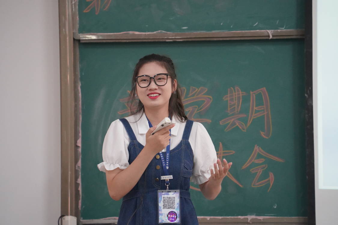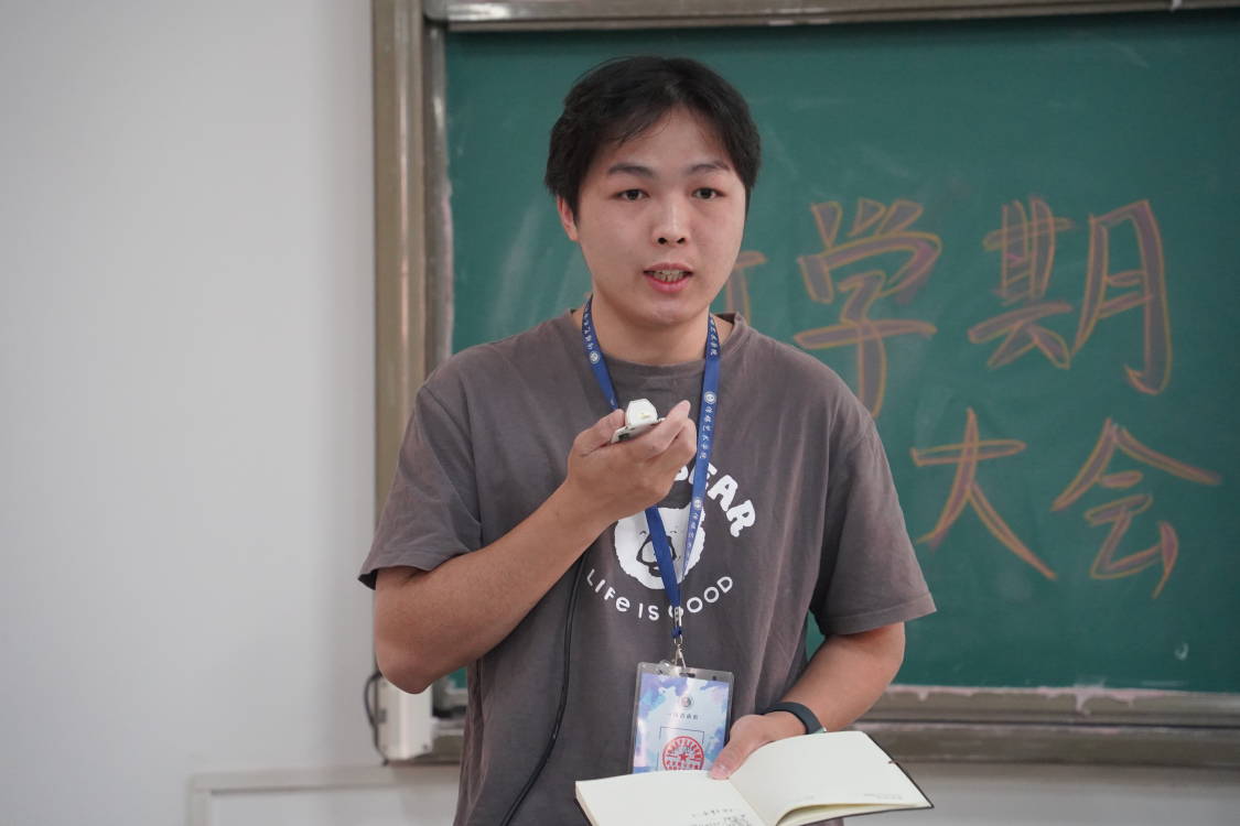 副主席张乐同学上台发言,他向大家介绍了员工会本学期后续的工作安排,肯定了同学们暑期的工作状态。
