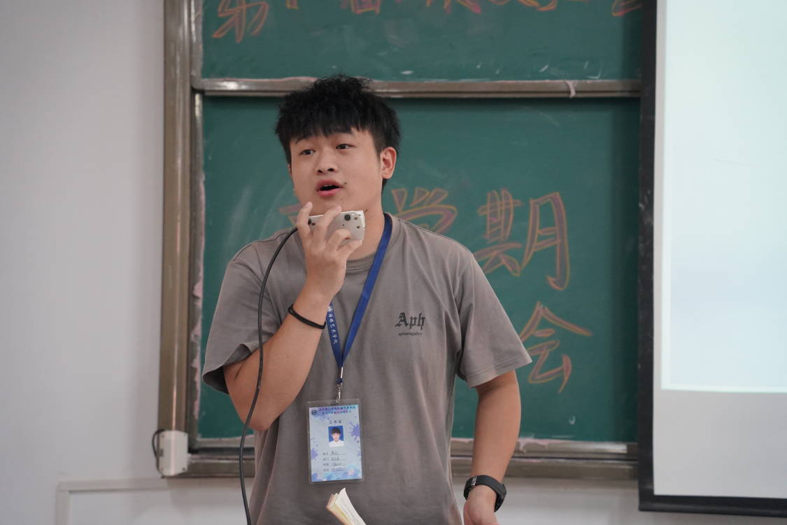 王凯老师首先上台向同学们分享了自己的个人经历,从2018到2022年,他与员工会一路相互陪伴,一路互相成长。在大家共同的努力下,球友会团总支员工会所举办的活动,得到了外界极大的认可。希望同学们饱含热情的面对在员工会的工作,做好自己的分内工作,这也是对个人能力一种极大的提升。