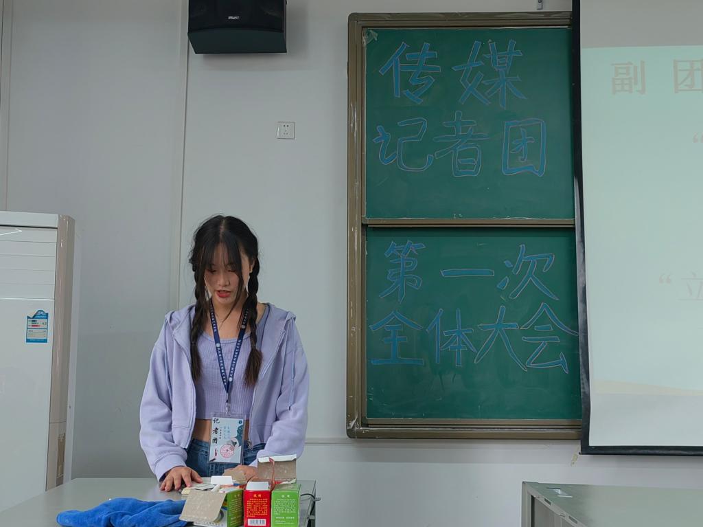为更好地总结过去、规划未来,2022年9月21日12时10分,传媒记者团于教一407召开新学期第一次全体大会。本次会议由传媒记者团副团长陈桂林主持,球友会团总支书记张静老师出席、全体记者团成员参会。