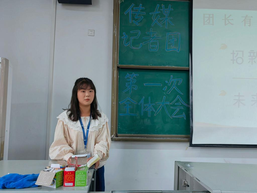 对于近期的招新工作,她表示,大家要树立好自身的形象与素质,展现记者团的良好风貌。她希望各成员提前思考如何做好承上启下的作用,让记者团能够平稳过渡各个阶段。她也希望大家能够在记者团中继续成长,不断锻炼与提升自我,提高综合实力。