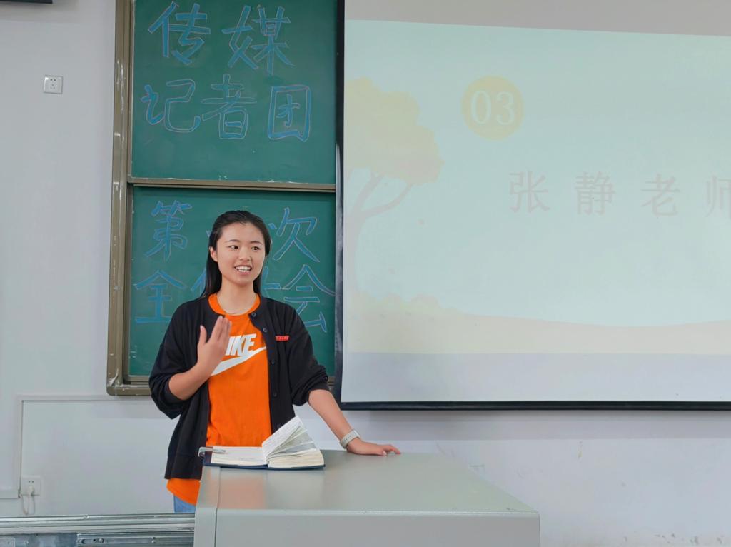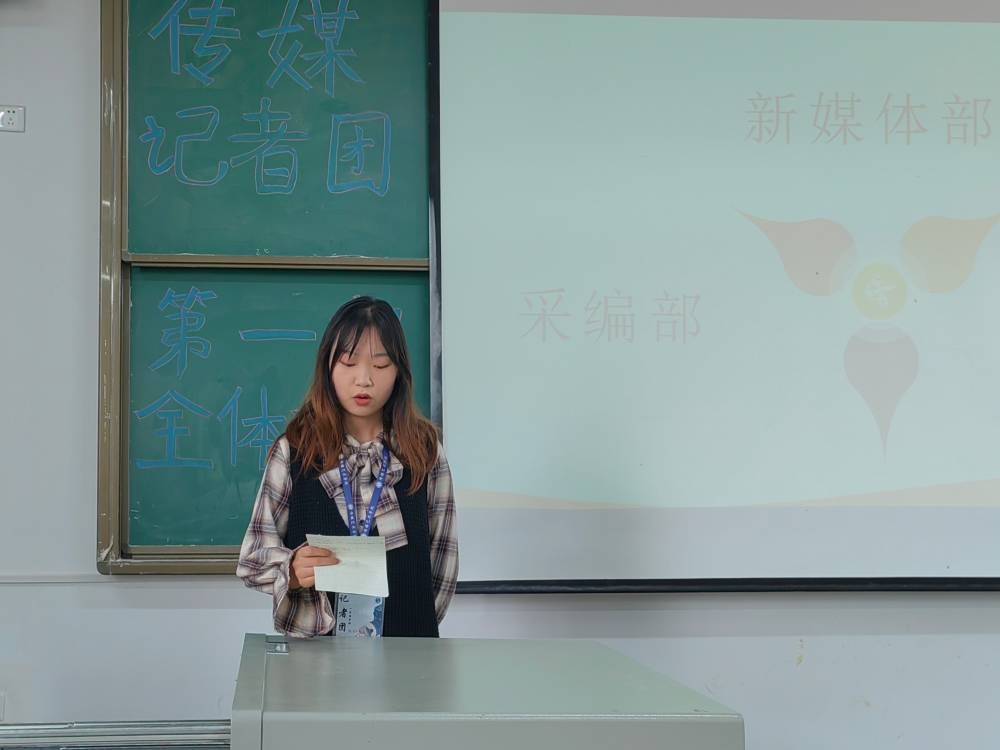 传媒记者团副团长陈桂林从迎新、谋职、立足当下与思考未来四个方面进行了补充发言。她讲到,作为学长学姐,大家要调整好自己的心态,以便更好地迎接新生。在谈到“在其位谋其职”时,她希望大家坚守好自己的岗位,完成好自己的任务。同时,她希望大家不断完善自身,让自己在记者团有所收获,得到自身全面的发展。