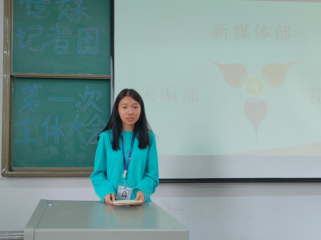 会议伊始,传媒记者团团长闫颉颉就暑期工作、招新计划以及未来规划进行发言。她向大家展示了公众号在暑期的相关数据,对暑假的工作成果表示了肯定。关于招新计划,她讲到,各部门前期的宣传应该清晰展现本部门的工作内容,让新生了解记者团,以便双向选择。同时,她也要求各部门确定面试的形式与问题,为后期迎新工作打好基础。