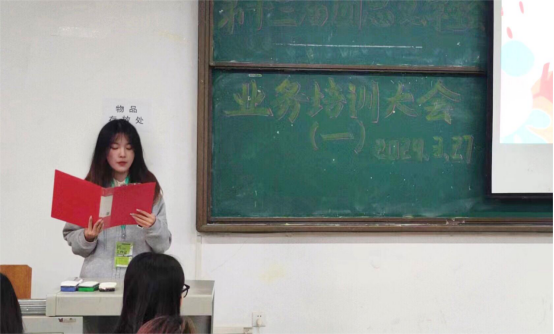 团总支副书记潘佳妮对大家进行了通讯稿专题培训。她主要从通讯稿准备工作、行文要求及行文结构开展,详细地讲解了通讯稿的格式、结构及风格要求。首先,她详细阐述了通讯稿准备工作的重要性并且提醒大家,在撰写通讯稿之前,要做好充分的准备工作,以确保通讯稿内容的准确性和完整性。接着,她对通讯稿的行文要求进行了详细讲解。她不仅强调了通讯稿的语言风格应简洁明了、通俗易懂,同时注重逻辑性和条理性,还提到了在撰写通讯稿时的一些实用技巧,例如如何运用修辞手法、如何恰当使用引用等,以提高通讯稿的阅读体验。最后,她向我们详细介绍了通讯稿的行文结构并提醒大家,在撰写通讯稿时要注意结构层次分明,使读者能够更容易理解和接受通讯稿所传达的信息。