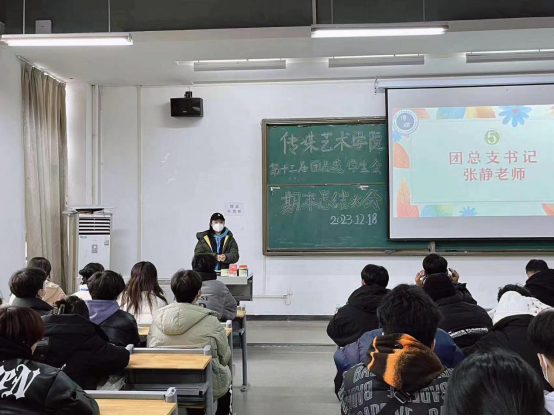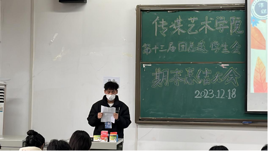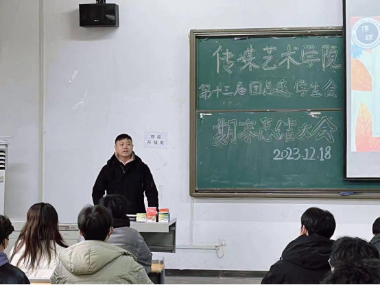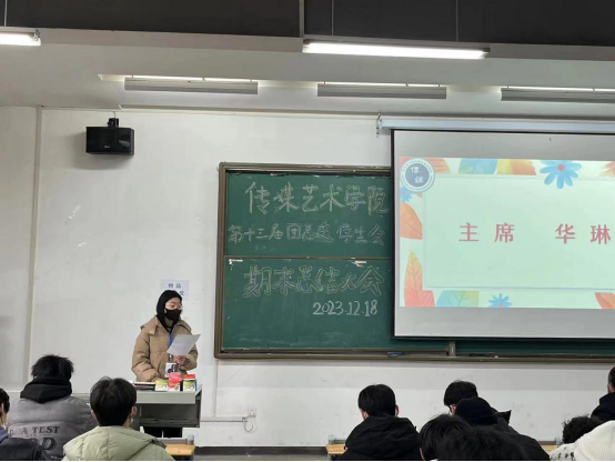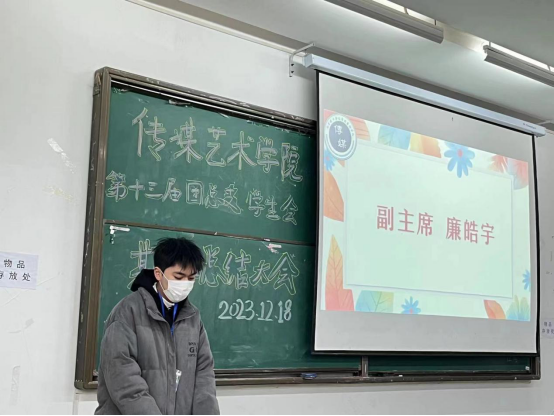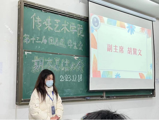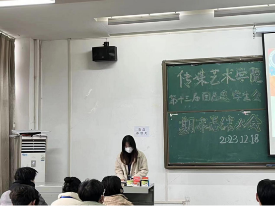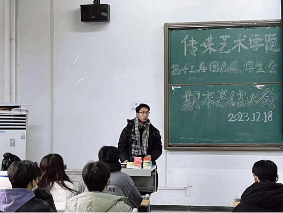 总结复盘,蓄力再出发。副主席侯奕娴对本学期所举办的活动进行了总结。她首先对大家在活动中的付出表示感谢与肯定,并从“回顾与总结”“巩固与创新”两个方面提出建议。她希望大家能够在活动中总结经验,记录好自己的成长,同时保持创新思维,利用假期创造出让人耳目一新的策划案,努力为传院特色活动注入“新鲜血液”。