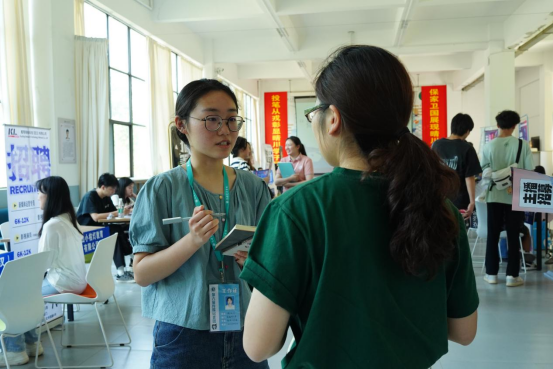 在招聘会上,同学们翻阅着手中的企业宣传单,不时停下脚步与各企业负责人进行交谈、互换信息。其中,不乏有正读大三的准毕业生,他们来到活动现场,以了解如今相关行业的具体情况,继而寻找合适的实习工作
