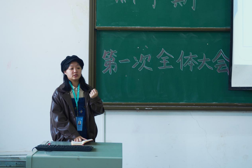 会议伊始,各部门部长依次上台进行假期工作总结,对新学期的工作安排提出要求。