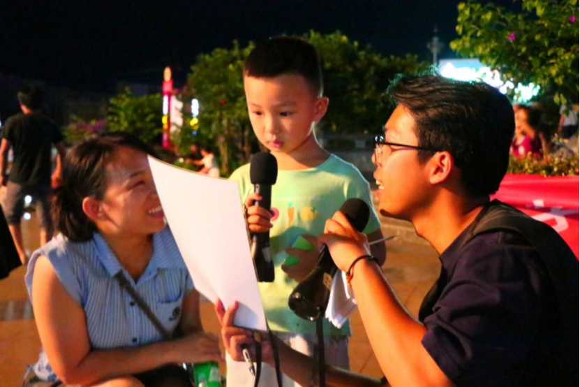 在做好校内教学的同时,熠“艺”“声”辉团队还积极走出校园,在世昌广场和七星广场等公共场所开展了一系列推广普通话的活动。他们以“添一笔变新字”和“绕口令挑战赛”等创意游戏为媒介,吸引了众多居民的参与。这些活动不仅让各族群众在轻松愉快的氛围中学习普通话,更让他们深刻感受到了普通话作为国家通用语言的魅力和重要性。同时,团队成员们还通过面对面走访调研的形式,深入了解了当地各族群众的普通话使用情况及需求,为后续的推普工作提供了宝贵的参考。