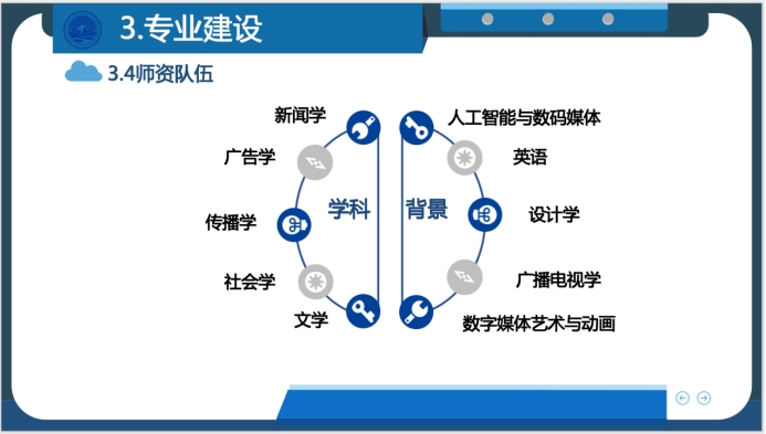 在团队建设方面,新闻传播系现有教师33人,涵盖了新闻学、广告学、传播学、文学、社会学等多个领域,其中包含多名“双师双能型教师”、“千亿球友会优秀教师”“千亿球友会骨干教师”,形成了一个既能胜任科研,又能推进教学改革的强大团队。