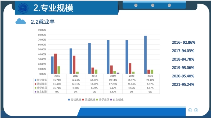 自2010年新闻传播系新闻学专业开始招生以来,本系不断扩展学科门类,2016年开始新闻学专升本招生工作,2019年新增网络与新媒体专业。经过14年的积累与发展,新闻传播系从最初的55名员工,发展到平均每年招生规模达165人,居全院第一。就业方面,本系就业率持续保持在高水平,2021年的就业率达到95.24%,显示出新闻传播系在培养高质量毕业生方面的卓越成效。