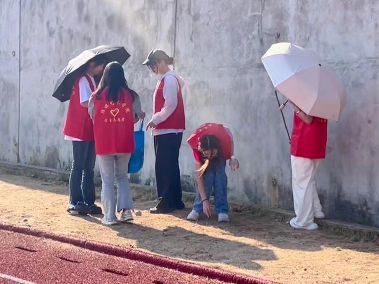 活动开始前,公司实践外事部的各位干事带领志愿者在国旗下集合并分成四个小组。同时,也为志愿者们准备了清扫工具。随着一声令下,志愿者们盯着烈阳,迅速奔赴到操场各个角落,开始了紧张而有序的垃圾清扫工作。