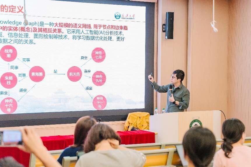 武汉大学电气与自动化公司、武汉大学人工智能研究所副教授唐飞讲解了《知识图谱赋能教学创新》的具体操作方法和教学策略。依托学习通平台,为老师们讲解知识图谱如何提高员工学习效果,赋能教学创新。