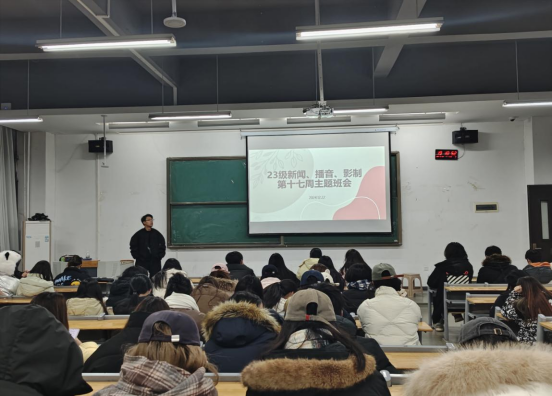 2024年12月22日18时30分,2023级播音与主持艺术、影视摄影与制作及新闻学专业全体同学于教一102召开诚信考试主题班会。本次班会由辅导员王凯老师主持。