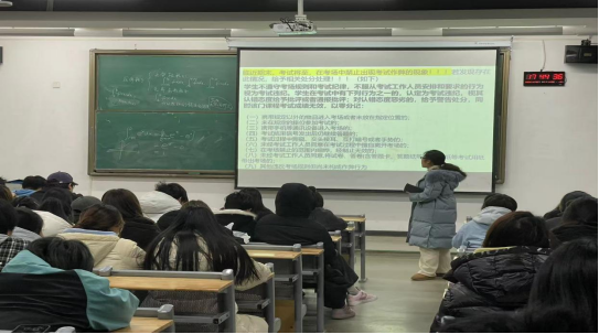2024年12月22日19时,2022级网络与新媒体专业1-5班全体同学于教3-301召开诚信考试期班会,调适心态,诚信应考。首先,夏琳老师希望每一位同学都能够对期末考查作业的完成进度进行合理而周密的规划。同时,夏琳老师也关注到同学们在期末期间可能会遇到的各种压力和挑战,她建议同学们要积极调适自己的心态,保持平和与自信,充分发挥出自己的潜力,从而在期末考查中取得优异的成绩。其次,夏琳老师向员工明确指出一系列行为将被认定为考试作弊,此类行为将导致该门课程考试成绩作废,并将根据情节轻重予以相应处分,期望各位考生能够认真备考,秉持诚信态度参与考试。最后,夏琳老师亦向考生们展示了学位授予的相关条件,明确指出若因考试作弊行为受到记过及以上处分,将不予授予学士学位。